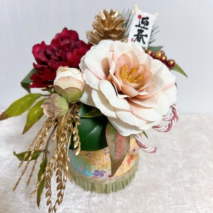 主な花材には丈夫な素材のアーティフィシャルフラワー(造花)を使用しています。玄関先や床間、リビングなどお好みの場所にご利用ください。